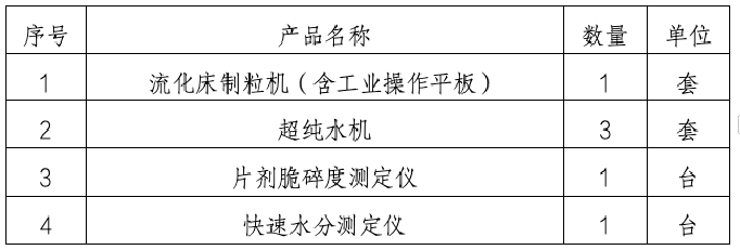 项目名称:制药实训车间流化床制粒机等设备采购