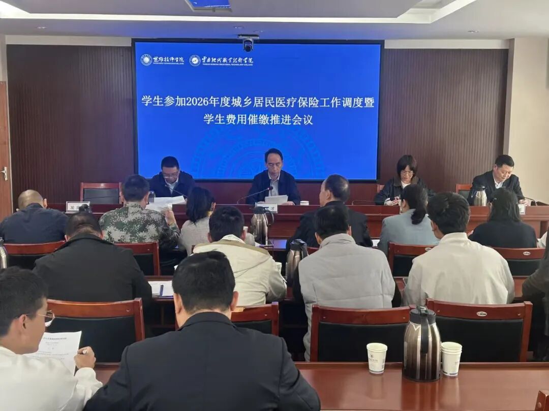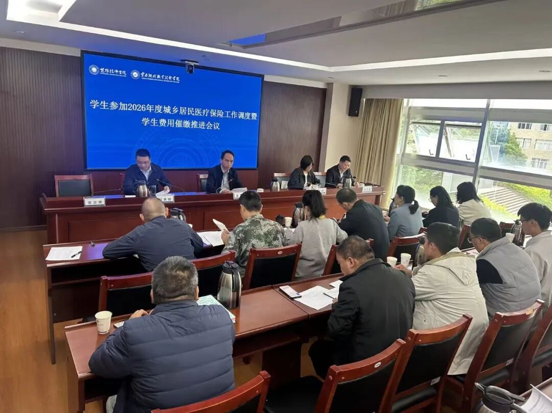 会议首先由财务处通报了当前学生参保及缴费工作的整体进展情况。随后,各二级学院依次汇报了本院学生医保工作的具体推进举措与成效。楚雄州医保中心副主任肖梅及相关人员应邀出席会议,并就学生参保相关政策与业务流程进行了专业培训和指导。