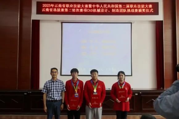 6月1日上午,在我校党校报告厅举行2023年云南省职业技能大赛暨中华人民共和国第二届职业技能大赛云南省选拔赛第二轮次CAD机械设计、制造团队挑战赛赛项颁奖仪式。